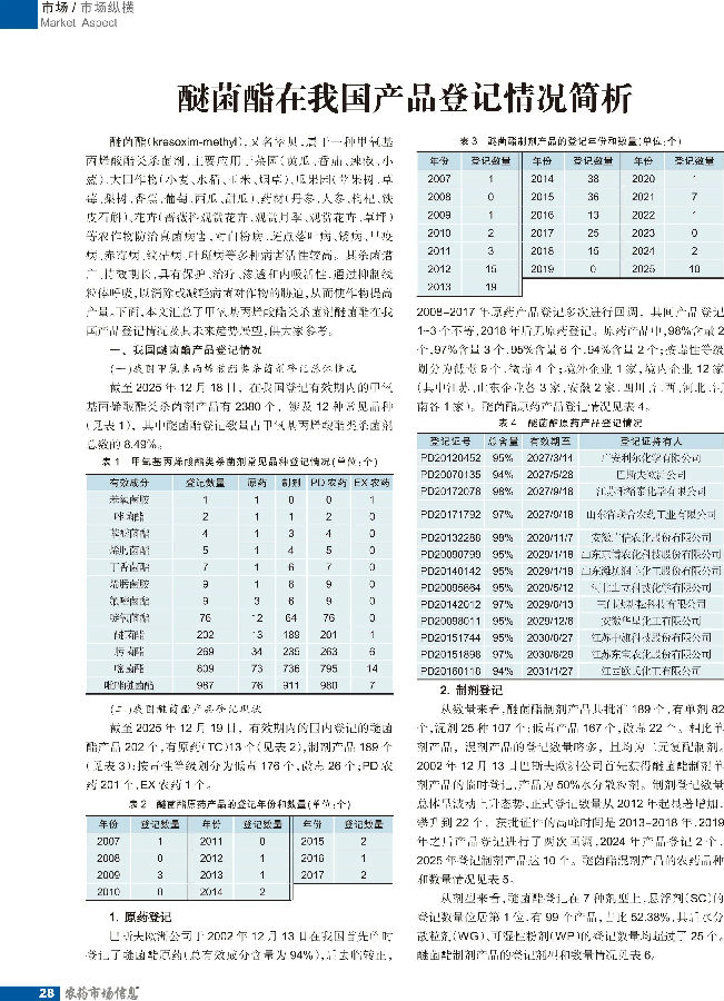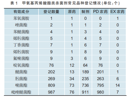 (一)我国甲氧基丙烯酸酯类杀菌剂登记总体情况