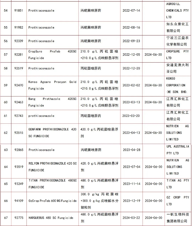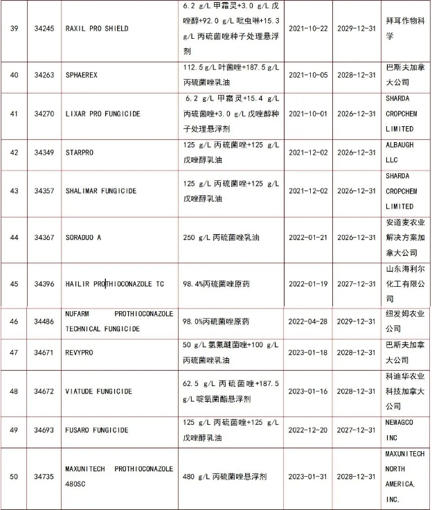 136个丙硫菌唑登记产品一览表