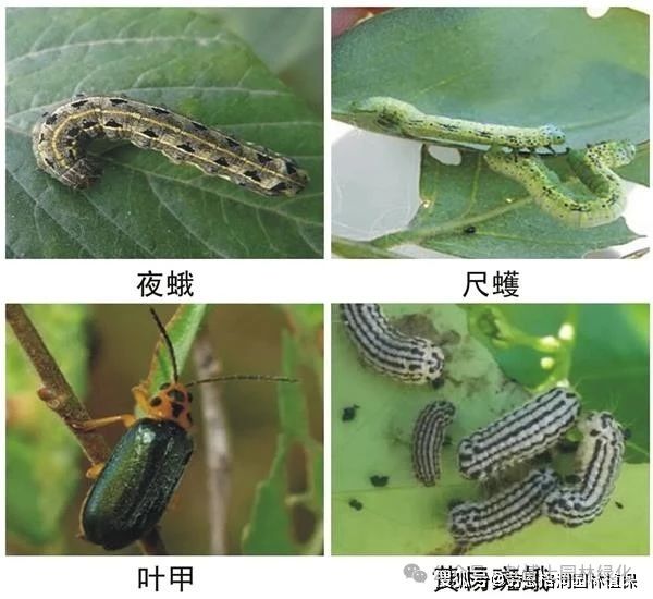 食叶害虫是以叶片为食的害虫。常咬成缺口或仅留叶脉,甚至全吃光,少数种群潜入叶内,取食叶肉组织,或在叶面形成网幕,一旦发生危害则虫口密度大而集中成虫远距离迁飞,是该类害虫经常猖獗为害的主因,幼虫也有短距离主动迁移危害的能力。应加强监测预报、综合治理、统防统治;采取以人工防治、释放天敌防治、安装诱虫灯防治、植物源药剂防治、生物药剂防治的综合防控措施,从而有效地控制害虫危害。