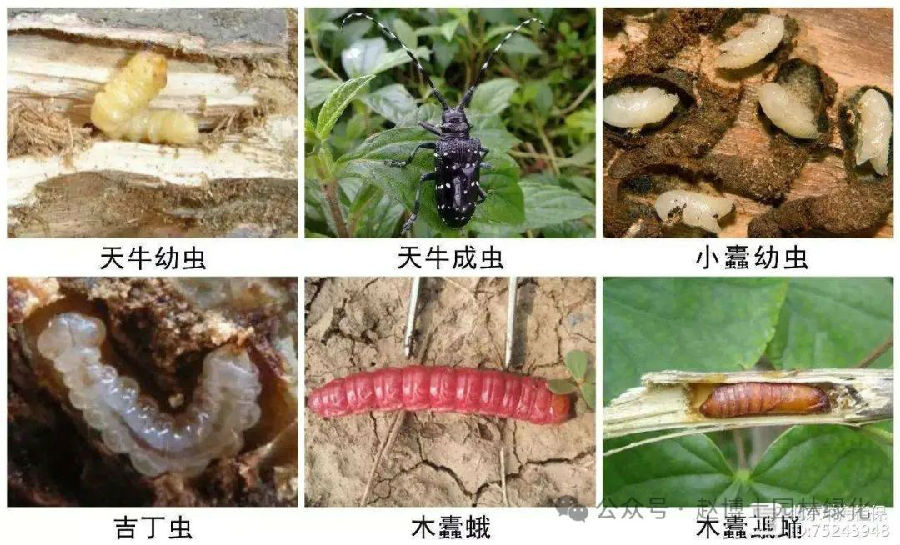 蛀干害虫以幼虫钻蛀树干,危害方式隐蔽,受外界环境影响小,天敌少,危害严重。主要采取营林措施,优化树种结构;人工防治、生物防治、药剂防治(毒签法、打孔注药法、树干喷药)。应加强监测预报、综合治理、统防统治。