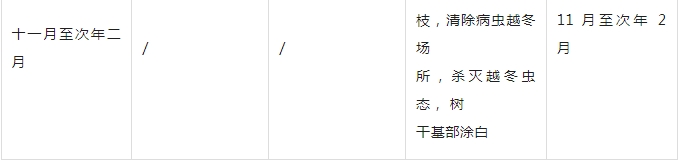 1.蚧壳虫防治技术:1 人工剪除,收集深埋。2 树干涂抹粘虫胶或粘虫带,防治爬干害虫。3 可采用以下药剂进行防治:1) (2%吡丙醚+23%噻嗪酮)悬浮剂,全株喷施;2) (25%噻嗪酮+5%噻虫嗪)悬浮剂,全株喷施;3) 29%石硫合剂水剂,全株喷施;4) (22%噻嗪酮+11%螺虫乙酯)悬浮剂,全株喷施;5) 45%马拉硫磷乳油,全株喷施。