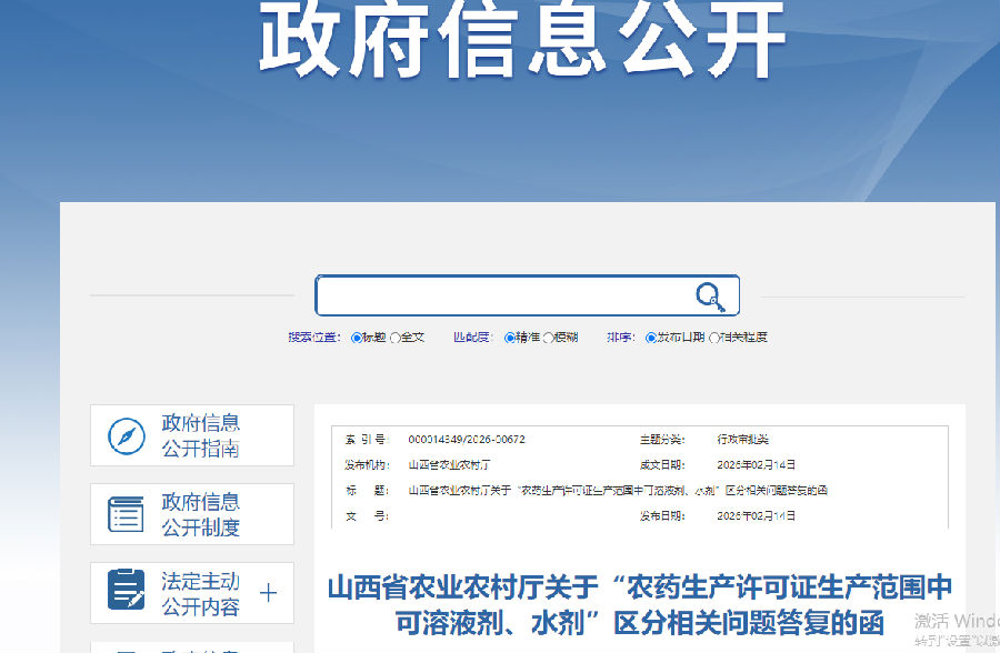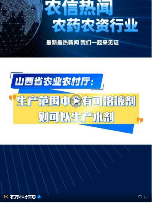 山西省农业农村厅:生产范围中含有可溶液剂则可以生产水剂