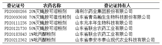 截至2022年10月10日,我国批准登记的大姜储存用药(用于防治姜蛆)产品名单如下: