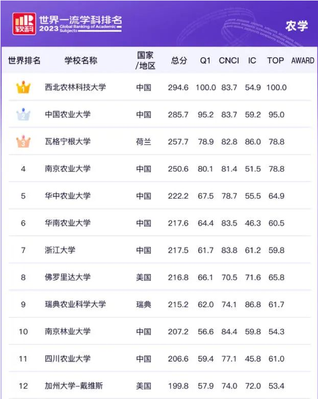 祝贺!西北农林科技大学农学学科位居世界第一!