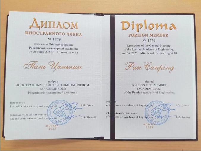 俄罗斯工程院院士证书-潘灿平教授