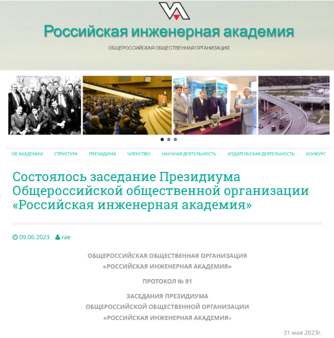 俄罗斯工程院官方网站新闻报道,于6月9号召开了主席团会议并审议了增选院士名单。