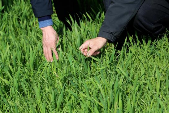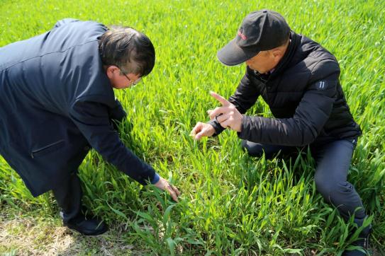 张研究员深入田间与农场主吴泽华等一起查看杂草发生情况,结果发现田间看麦娘、早熟禾、硬草等禾本科杂草发生特别多,荠菜、猪殃殃、繁缕等阔叶杂草发生较少情况,张老师随即提供了选用异丙隆+炔草酯+甲基二磺隆+氯氟吡氧乙酸+助剂的用药方案,按每亩对水20kg,进行弥雾机弥雾,以确保除草效果和小麦安全。