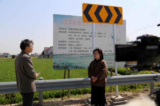 《农药市场信息》传媒顾旭东总编对刘桥镇蒋一农地粮食种植合作社黄宏(右)进行地头采访