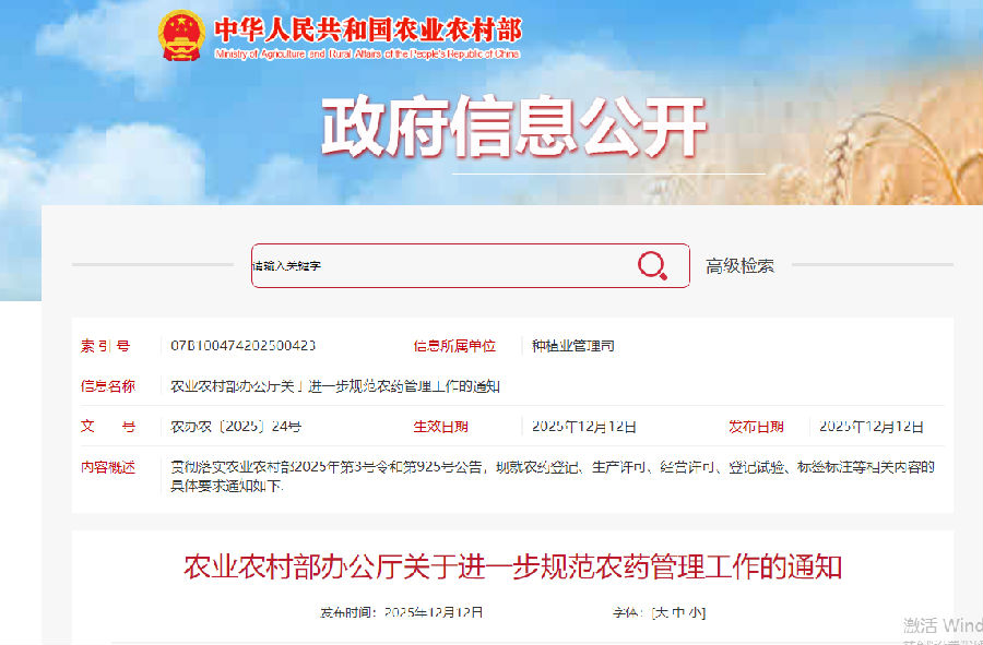 农业农村部发布最新管理通知:农药登记、生产、经营、标签管理有新要求