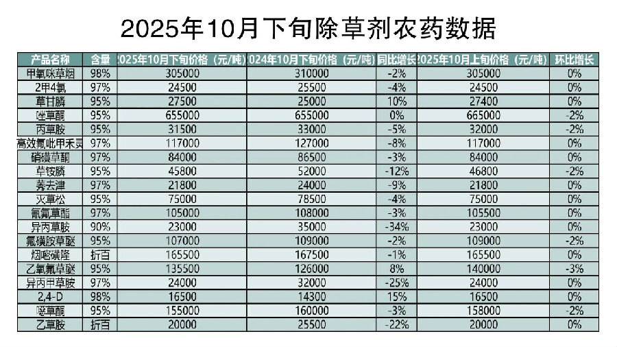 当前市场行情持续淡季盘整,冬储品种的备货需求有望在11月逐步释放。在此背景下,市场等待新周期启动,随着全国植保双交会的临近,或将带来新一轮的市场波动。产业链各环节也要根据行情不断灵活调整采购备货策略,来适应未来不确定性的市场。产品冬储政策陆续出台,上下游逐步展开商谈,产业链各环节也要根据行情不断灵活调整采购备货策略,来适应未来不确定性的市场。