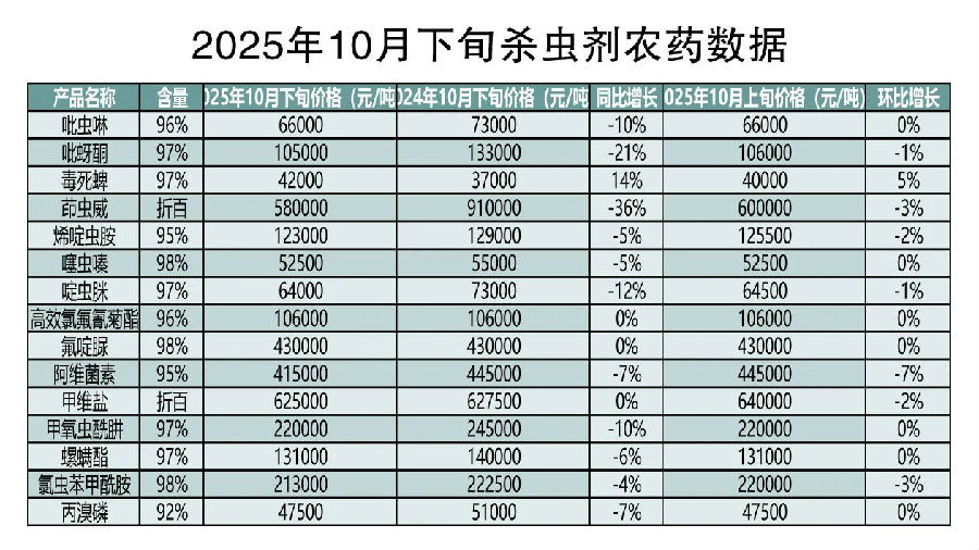 农信数据快报:毒死蜱、腈菌唑等原药价格上涨,唑草酮、阿维菌素、噻酰菌胺等原药价格下跌