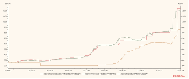另据wind数据,当前全球主要化肥产品尿素、磷酸一铵、磷酸二铵、氯化钾等在部分地区的市场价格均已突破1000美元/吨。