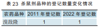 登记的1个杀鼠剂产品中,有效成分为溴敌隆,为单剂(见表23)。