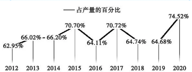 图2 2012—2020年农药出口量占产量的百分比(折百后)