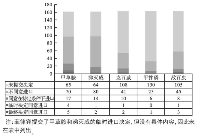 图4 缔约方提交甲草胺等5个附件3农药的进口决定的相关情况