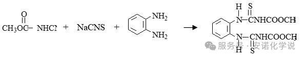 甲基硫菌灵(商品名:甲基托布津)是以邻苯二胺(0.42MT/MT)、光气、甲醇、硫氰酸钠(0.74MT/MT)为原料,通过硫氰化和缩合等多步反应合成。