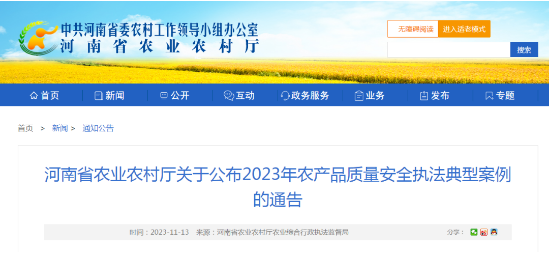 为继续保持高压严打态势,严厉打击农产品质量安全领域违法行为,现将河南省遴选出农产品质量安全执法典型案例予以公布: