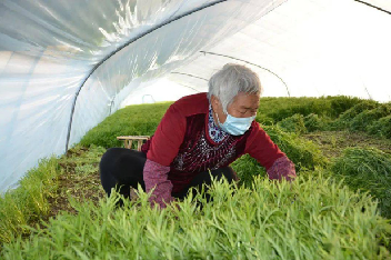 “待在家里也没什么事情要忙,就到这个芦蒿基地来打工。一天能赚90块钱,晚上高高兴兴回家。”正在忙碌的杨庄村村民王福芝说。