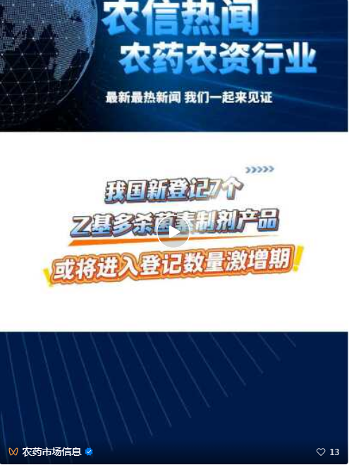 继齐鲁制药(内蒙古)有限公司(现已变更为安徽华星化工有限公司)、江苏省溧阳中南化工有限公司分别登记60克/升乙基多杀菌素悬浮剂、10.5%苏云金杆菌·乙基多杀菌素悬浮剂产品后,2025年12月22日,5家国内企业又新登记7个乙基多杀菌素制剂产品,其中单剂3个,复配剂4个,预示着该有效成分或将在我国进入登记数量激增期。