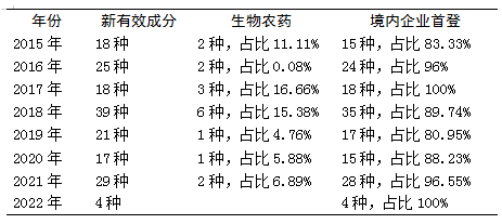 表41 2015-2022年小麦上境内企业首登新化学农药品种和年份