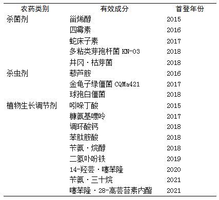 表40 2015-2022年在小麦上首登新生物农药品种和年份