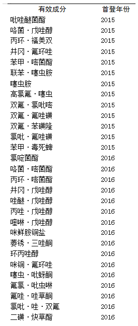 表39 2015-2022年新农药品种在我国小麦的登记情况