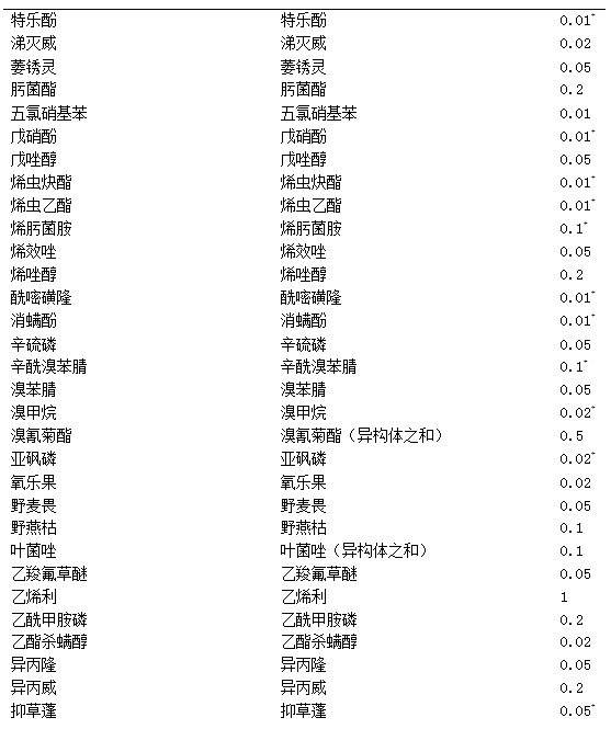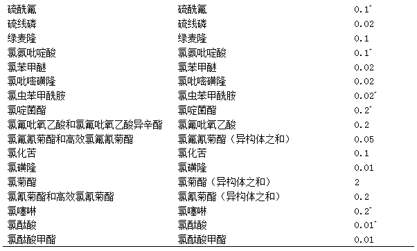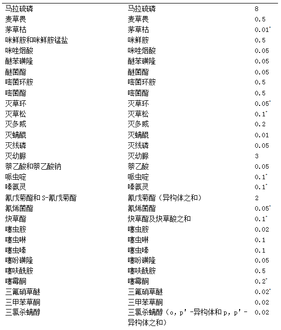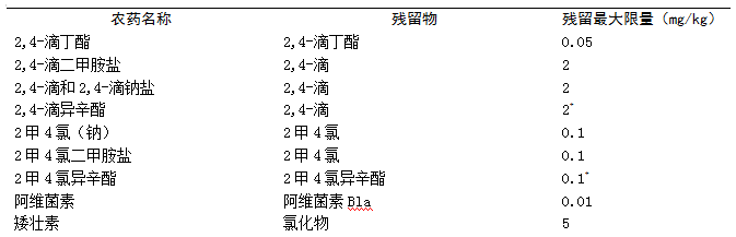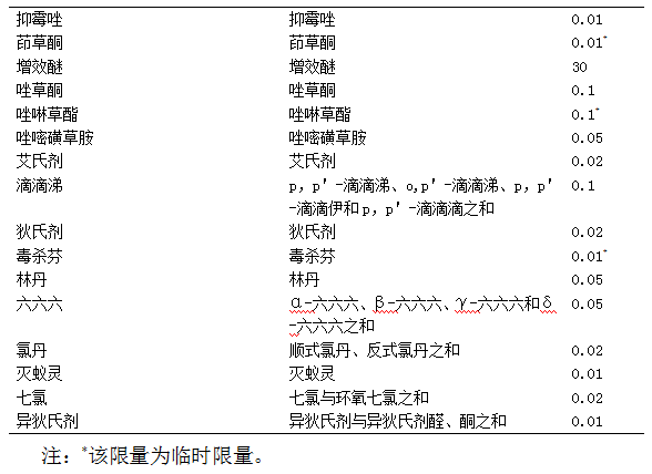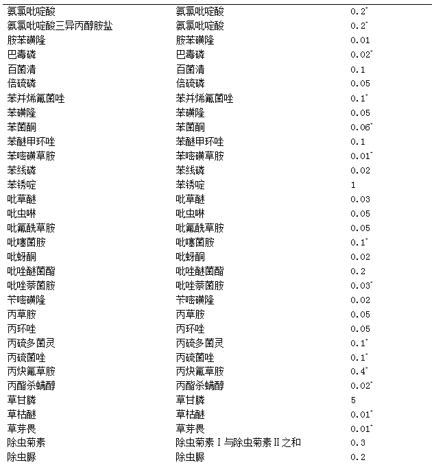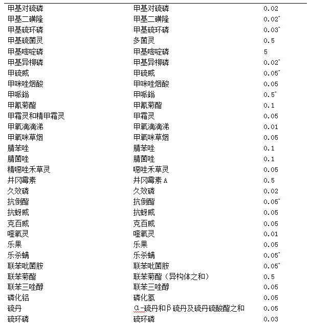 242种残留物的最大残留限量囊括了小麦生产上的常用药,除蜡质芽孢杆菌、地衣芽孢杆菌、荧光假单胞杆菌、多粘类芽孢杆菌 KN-03、木霉菌、枯草芽孢杆菌、耳霉菌、金龟子绿僵菌CQMa421、球孢白僵菌、三十烷醇、几丁聚糖、氨基寡糖素、S-诱抗素和低聚糖素等14种农药豁免制定食品中最大残留限量标准外,仍有硫磺、拌种双、丁香菌酯、氟嘧菌酯、克菌丹、喹啉铜、噻菌灵、烯肟菌酯、嘧啶核苷类抗菌素、大黄根茎提取物、敌磺钠、咪鲜胺铜盐、混合氨基酸铜、甾烯醇、四霉素、蛇床子素、灭菌唑、氯氟醚菌唑、丙硫唑、氟唑菌苯胺、氟唑菌酰羟胺、矿物油、苦参碱、顺式氯氰菊酯、哒嗪硫磷、藜芦根茎提取物、双丙环虫酯、特丁净、三氯吡氧乙酸、三氯吡氧乙酸丁氧基乙酯、2,4-滴胆碱、2,4-滴二胺、扑草净、二氯异噁草酮、砜吡草唑、甲哌鎓、苄氨基嘌呤、烯腺嘌呤、羟烯腺嘌呤、赤霉酸、吲哚乙酸、24-表芸苔素内酯、芸苔素内酯、14-羟基芸苔素甾醇、28-表高芸苔素内酯、28-高芸苔素内酯、丙酰芸苔素内酯、硅丰环、调环酸钙、二氢卟吩铁、苯肽胺酸、吲哚丁酸、噻苯隆、糠氨基嘌呤和22、23、24-表芸苔素内酯等55种农药的残留物的最大残留限量未给出,这为小麦生产留下了一定的安全隐患。