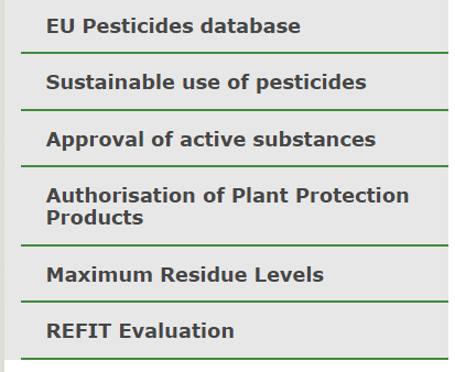 https://www.efsa.europa.eu/en/topics/topic/pesticides(可查询欧盟对农药活性成分的评审报告、风险评估、残留年报等)