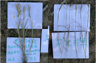 使用世科姆禾琪®拌种后的小麦区(右边)与未曾拌种的小麦区域(左)相对比,使用禾琪®拌种的小麦未曾发现任何黑穗、白穗,且茎秆生长粗壮,长势更佳