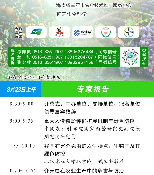 要想了解更多农药植保行业前沿以及最新资讯和进展,敬请参加8月22-23日在海南三亚召开的由陕西先农生物科技有限公司冠名的“首届全国果蔬花木介壳虫绿色防控与抗性治理技术交流会”!
