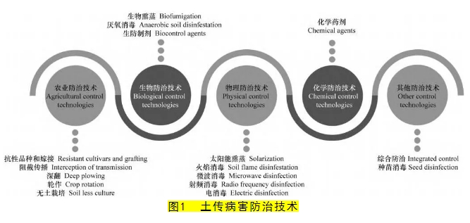 由于土传病害的发生具有较强的隐蔽性和极强的传染性,导致其防治较为困难,因此,土传病害的防治通常以预防为主,尽可能避免在种植田引入土传病原菌或带病种苗。土传病害发生后,则需要通过化学和非化学防治技术进行及时干预。