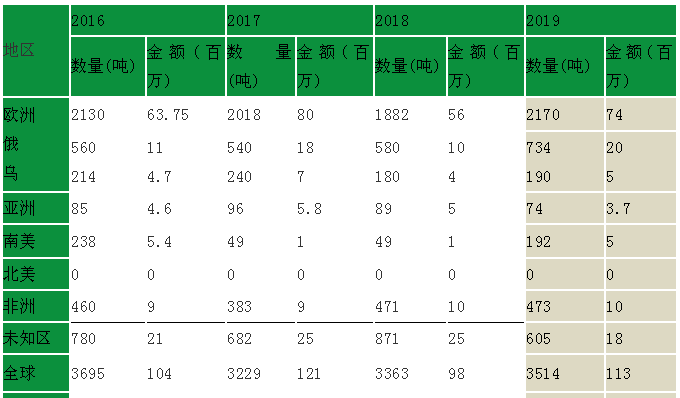 但是从2016-2019年的数据来看,螺环菌胺在蔬菜水果板块上的销售额持续增长,但是谷物上销售额年度波动较大(尤其2017年的谷物销售额锐减是导致复合增长率低的关键原因);而且螺环菌胺除了俄罗斯外,没有一个主力优势市场,考虑到其很大一部分销售额集中在欧盟国家、俄罗斯和代工发达的土耳其;其他国家虽然分布广泛,但是推广登记难度整体较大。