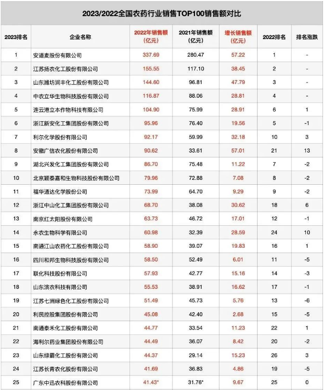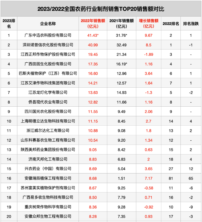 中国农药企业2023年与2022年销售总额和排名变化分析!总销售额同比增长28.76%
