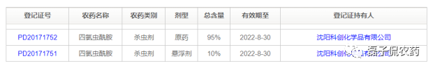 四氯虫酰胺在国内仅有两个登记,均来源于沈阳科创。
