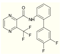联苯吡嗪菌胺(pyraziflumid,化合物名称:N-(3',4'-二氟联苯-2-基)-3-(三氟甲基)-2-吡嗪甲酰胺,CAS登录号:942515-63-1)是日本农药株式会社(Nihon Nohyaku Co., Ltd.)发现和开发的新颖杀菌剂,是琥珀酸脱氢酶抑制剂(SDHI),被杀菌剂抗性行动委员会(FRAC)分为第7组......