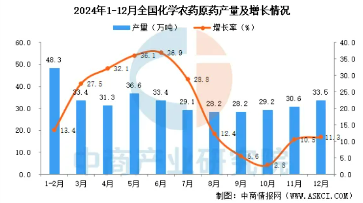 全国化学农药原药产量367.5万吨,同比增长22.2%