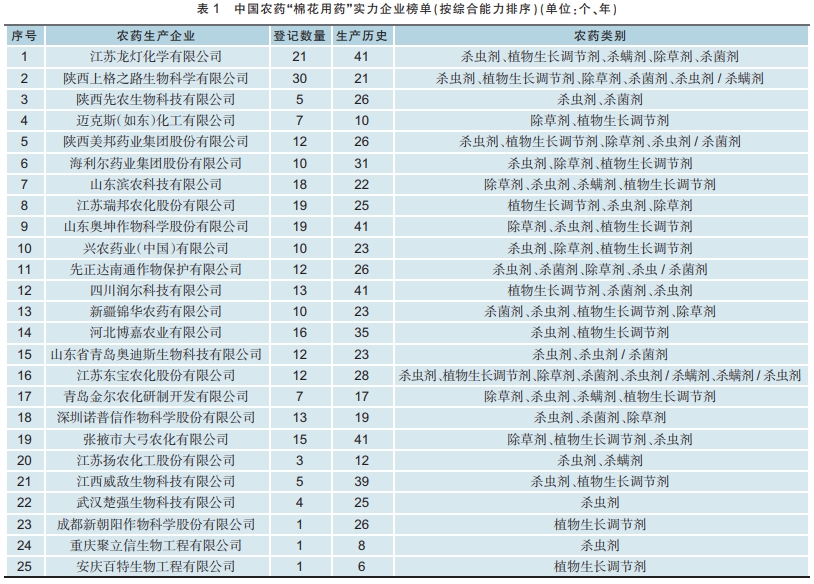 中国农药“棉花用药”实力企业榜单