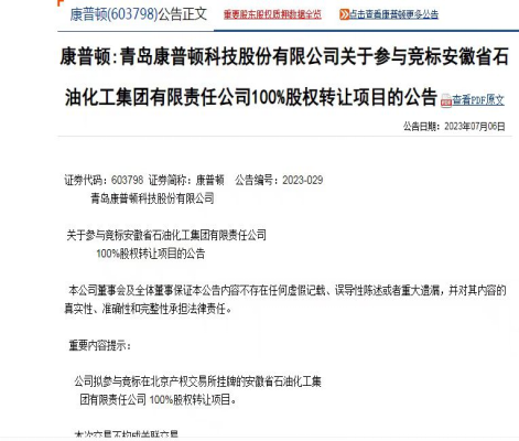 康普顿(603798)虽表现出了极大的收购诚意,但由于未能满足某些人的欲望,收购再次受到了阻挠。但康普顿为了自身在安徽的化工产业发展,由于安徽石化此次是在北交所公开挂牌转让,康普顿拟排除某些人的干扰,公开摘牌: