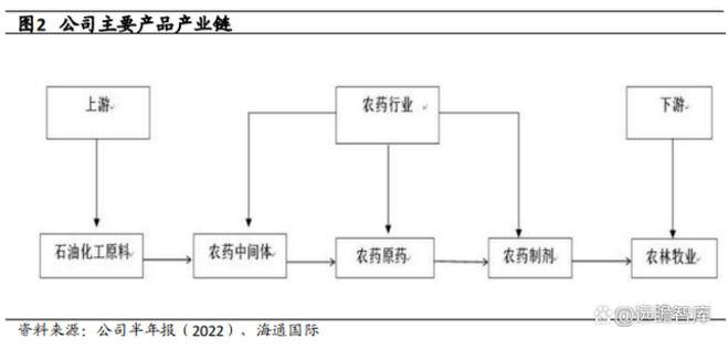 公司主要产品为环保、高效、低毒农药二甲戊灵的原药、中间体、制剂,是国内仅有的具备二甲戊灵原药、中间体、制剂全产业链生产研发能力的农药企业。同时,公司依托研发创新,积极推动二甲戊灵副产物的综合利用,利用二甲戊灵副产物成功开发了优秀杀虫剂甲氧虫酰肼的低成本全套合成工艺,并成功获得杀虫剂甲氧虫酰肼的原药登记。利用二甲戊灵副产物,公司有效开展了氟苯虫酰胺、苯唑草酮等新型优质农药的全新低成本合成工艺研发,致力于形成以二甲戊灵为主导,以甲氧虫酰肼、氟苯虫酰胺、苯唑草酮为辅助的独有的“1+3”核心产品布局,所有产品形成全产业链研发和生产。陈峰为公司董事长,最终受益股份占比为10.3%,为公司实控人和最终受益人。