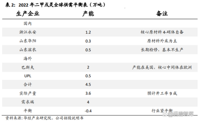 全球二甲戊灵的生产供给高度集中,目前全球二甲戊灵总产能大约为4万吨/年,其中国际上最大的生产企业为巴斯夫,产能为2万吨/年;国内最大的生产企业为贝斯美,产能为1.2万吨/年;其余印度联合磷化UPL大概产能5000吨/年,山东华阳产能大概为3000吨/年;山东滨农5000吨/年产能但基本不生产。