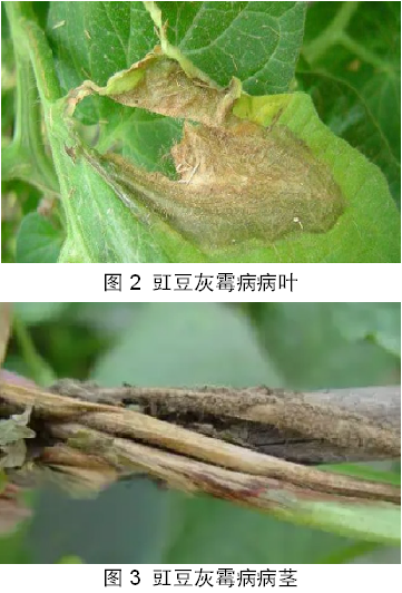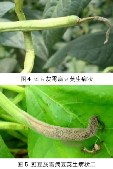 - 灰霉病主要为害豇豆的叶片、茎蔓、花和豆荚。一般下部茎蔓先出现深褐色的病斑,病斑中部淡棕色或浅黄色,干燥时病斑表皮破裂形成纤维状,湿度大时上生灰色霉层。有时病原从茎蔓分枝处侵入,引起病部形成凹陷水渍斑,植株逐渐萎蔫。苗期发病时,子叶呈水渍状变软下垂,叶片边缘长出白灰色霉层。较大的叶片上病斑有轮纹,后期易破裂。豆荚发病时,表现为病原先感染败落的花扩展到豆荚的病情,病斑初淡褐至褐色,后会软腐,表面生有灰霉。发生流行特点豇豆灰霉病的发生和流行与毒源、品种和环境,以及栽培管理技术密切相关。在有病原存活的条件下,只要具备高湿和20℃左右的温度条件,灰霉病便易发生和流行。而且腐烂的病荚、病叶、病卷须、败落的病花落在健部,也会引发灰霉病。特别是阳光不足、郁蔽、通风不良,湿气滞留时间长的地区,往往较易发生和流行。防治技术针对豇豆灰霉病的防治,首先要因地制宜地选用抗病良种,并采用垄作或高畦深沟种植,合理密植,有利于田间通风透光,棚室种植要适当提高棚室夜间温度,增加白天通风时间,及时清除病残体,田间零星发病时要及时摘除病叶,拔除病株,并集中烧毁。同时施足有机肥,增施磷钾肥,提高植株抗病性。定植后出现零星病株时,虽然目前暂未有药剂针对豇豆灰霉病进行登记,但可及时选用62%嘧环·咯菌腈水分散粒剂1500倍液,或500克/升异菌脲悬浮剂1500倍液,或10亿CFU/克解淀粉芽孢杆菌QST713悬浮剂400毫升/亩等药剂进行均匀喷雾,可有效防治豇豆灰霉病。并视病情间隔7~10天再喷施1次,连续2~3次即可,注意采收前3天停止用药。