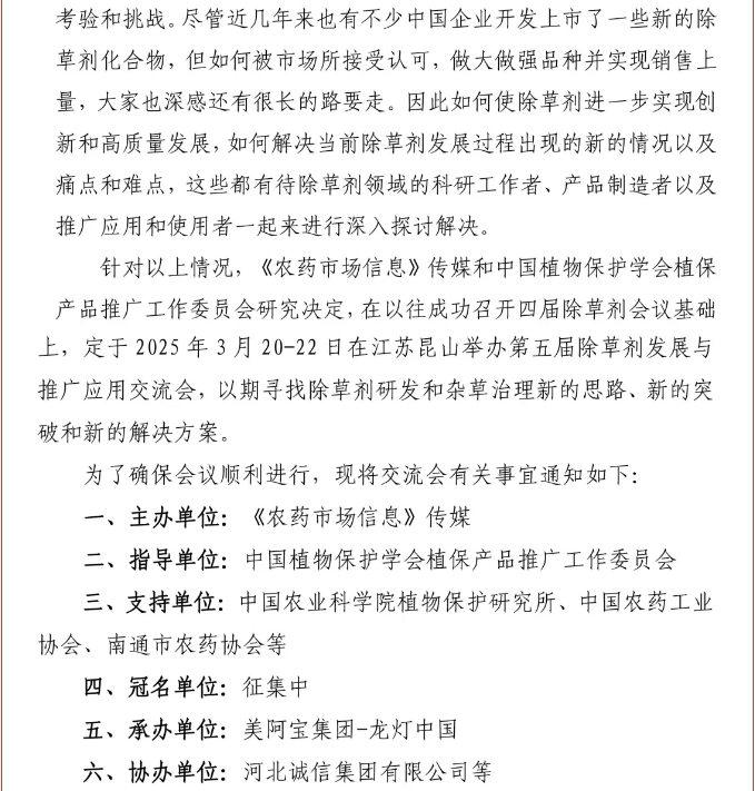 蓄势待发!第五届除草剂会议总体方案出炉,诚邀冠名协办