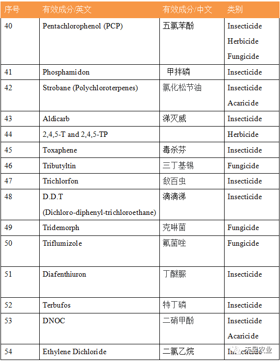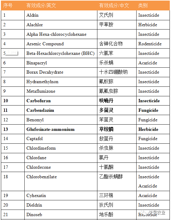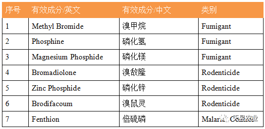 其中毒死蜱自2021年7月1日起禁止进口、当地配制、分装、销售和使用。