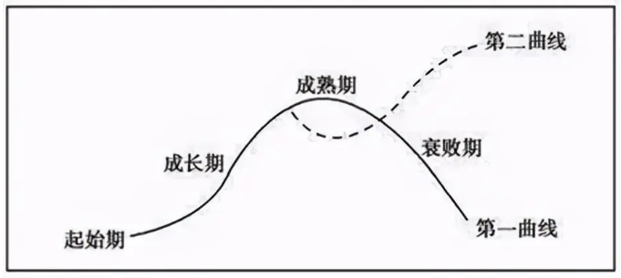 这样的增长符合英国管理学家查尔斯·汉迪曾经提出的著名“第二曲线”理论。他认为跟人类相关的一切生命和组织,包括企业、国家、政府和联盟,都符合“S型曲线”的增长规律,企业正是如此,每个业务起始阶段都是投入期,要投入资金、培训人手,进行各种尝试,这个阶段的特点是投入大、产出小。因此个人或组织必须在第一增长曲线达到顶峰之前,致力于开辟第二曲线,旨在当前者无力上行时,第二曲线爆发出活力。