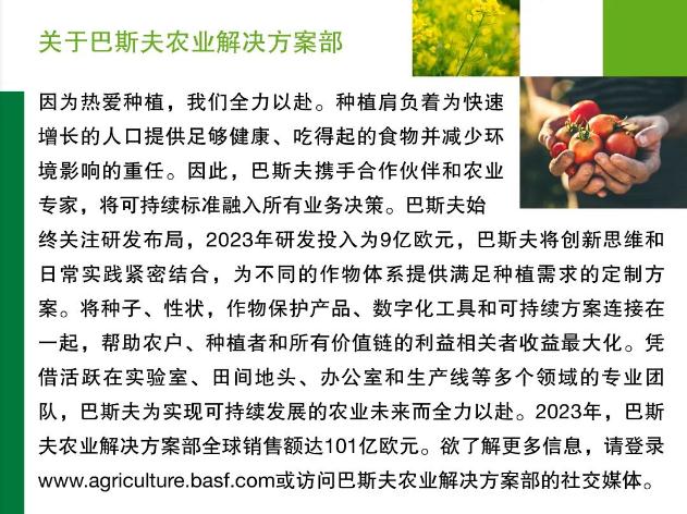 巴斯夫农业解决方案部将不遗余力地研发
