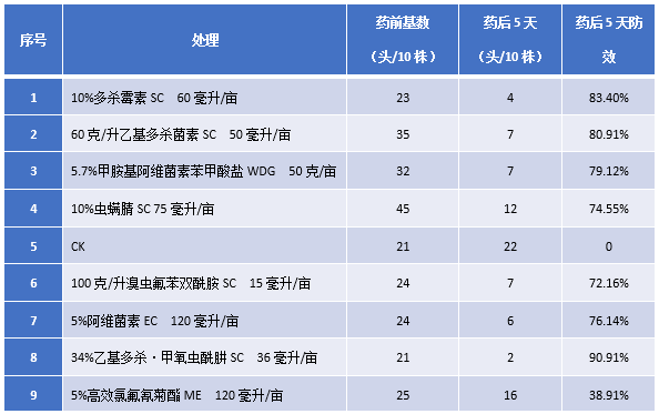 由此试验可以看出,齐鲁植保的10%多杀霉素悬浮剂防治小菜蛾效果较好,60毫升/亩药后5天死虫率达83.40%,优于绝大多数常见药剂。