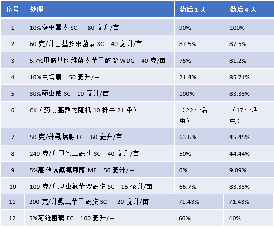 由此可以看到,齐鲁植保的10%多杀霉素悬浮剂防治小菜蛾效果很好,优于常见多数品种。药后1天死虫率达90%,药后4天死虫率100%。