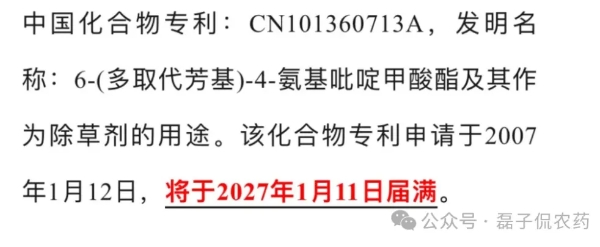 氯氟吡啶酯化合物专利到到底是2032年还是2027年到期?