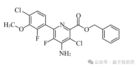 氯氟吡啶酯(florpyrauxifen-benzyl)是陶氏继氟氯吡啶酯之后开发的又一个新颖芳基吡啶甲酸酯类除草剂,按其化学结构归属于吡啶羧酸类除草剂(从作用机理来看,它归属于最早开发的选择性“合成激素类”除草剂)。