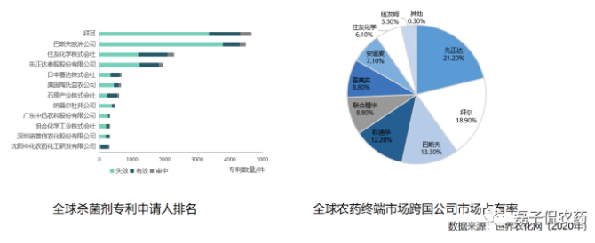 拜耳受益于近二十年来对大量杀菌和除草剂上的相关专利投入,拜耳是全球杀菌剂相关专利申请最多的企业,也是杀菌剂相关投入最大的跨国企业。